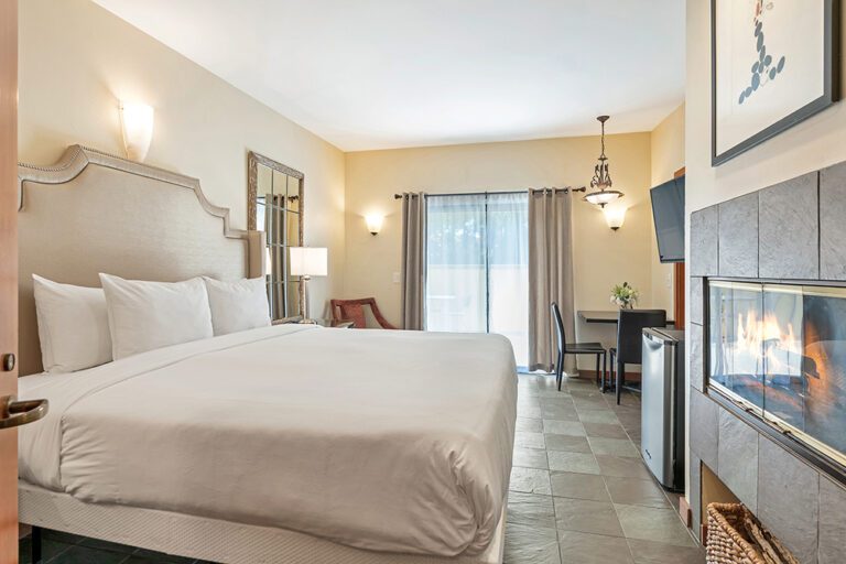 The terraced gardens, red tile roofs, terracotta stucco, and columned veranda of our estate in Sonoma County will transport you to the Mediterranean. Cozy up to wood-burning fireplaces or relax in your suite’s soaking tub as you soak up the ambiance of wine country. The quaint charm of our property awaits you.